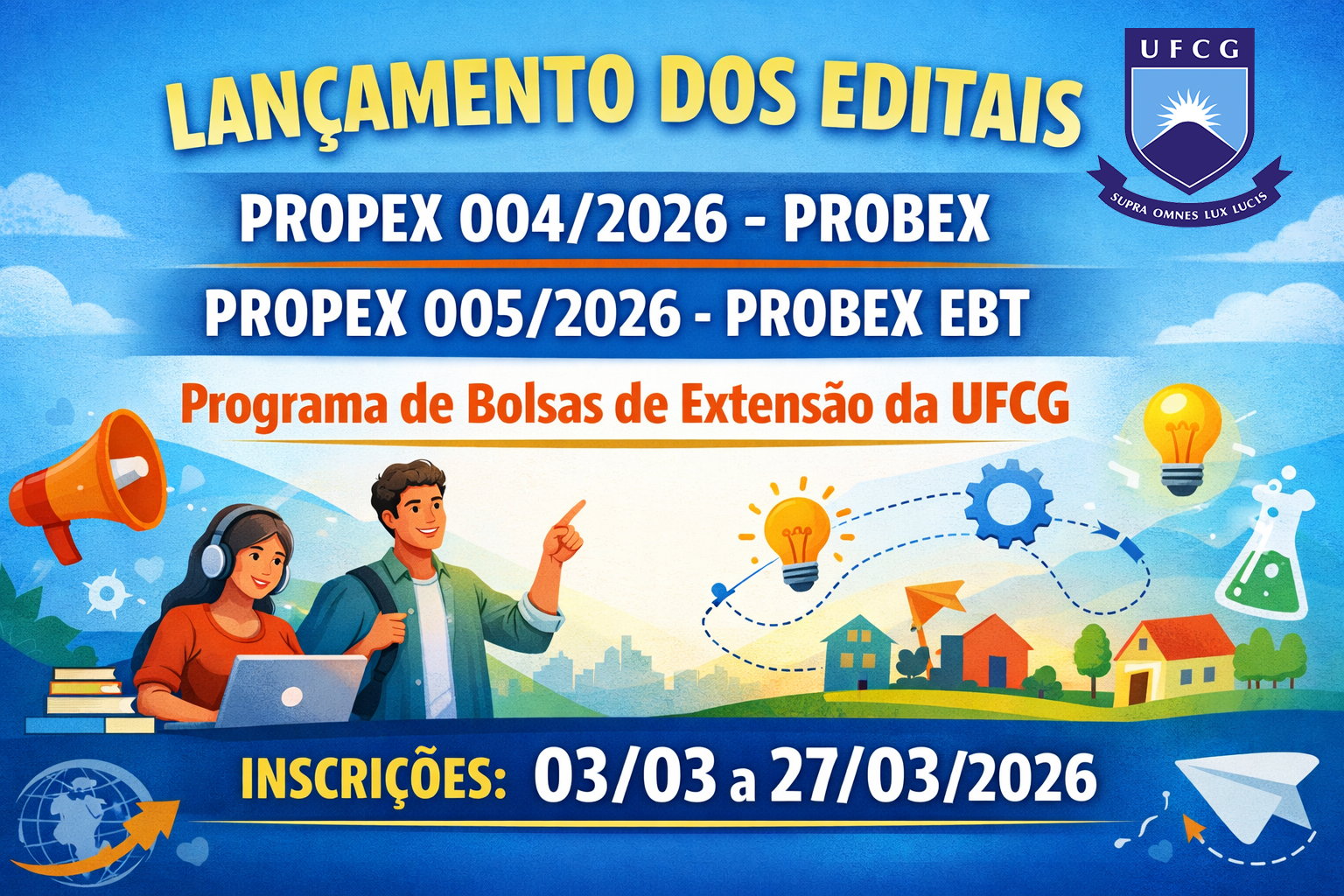 PRPG e PROPEX lançam Editais de Seleção de Bolsistas do Programa PROEXT-PG/UFCG