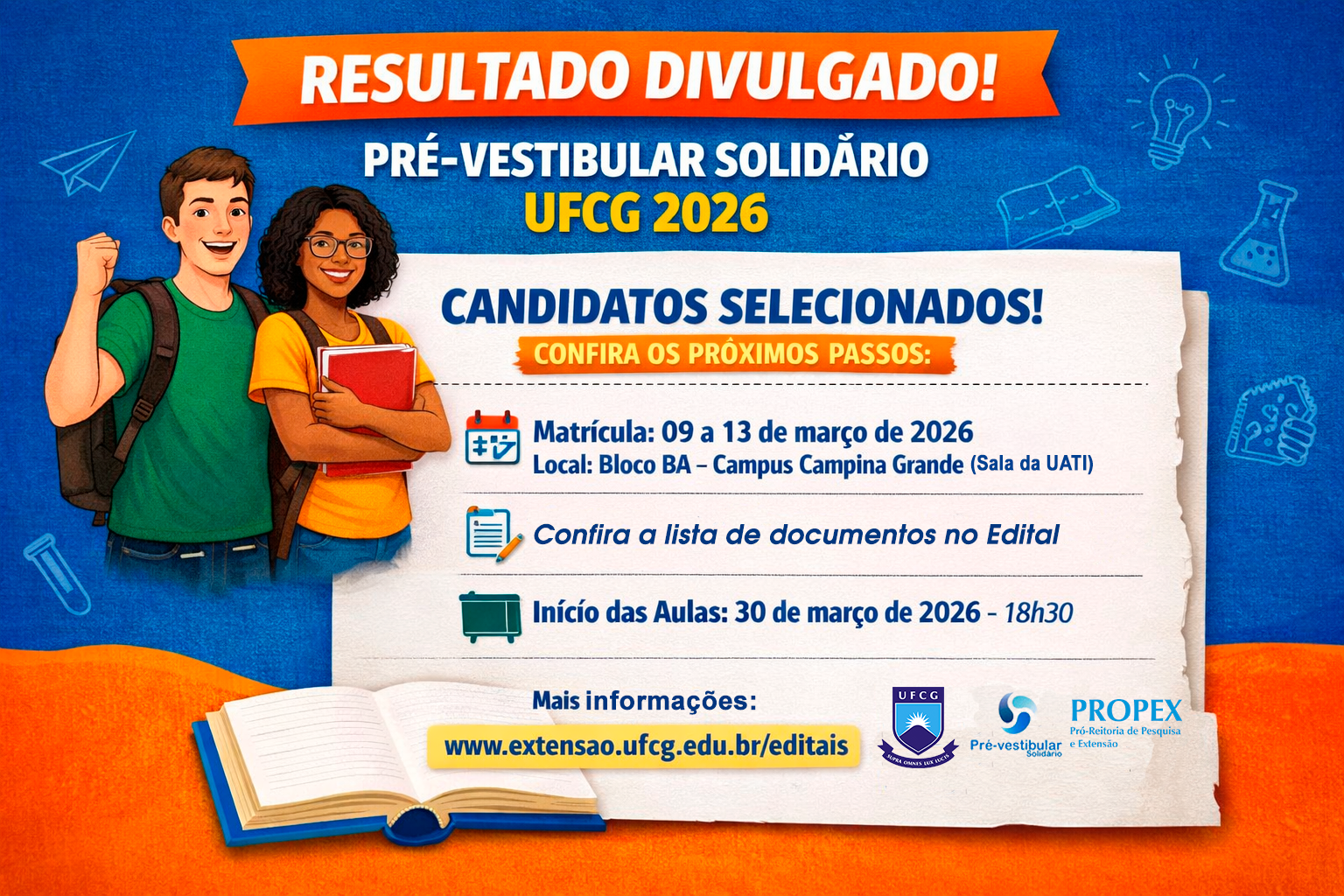 UFCG divulga lista de estudantes selecionados para o cursinho PVS/CG