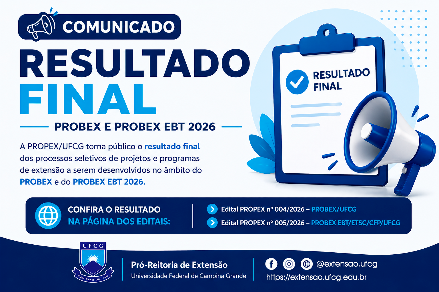 PROPEX divulga resultado da homologação das inscrições dos Editais 004/2026 PROBEX e 005/2026 PROBEX EBT