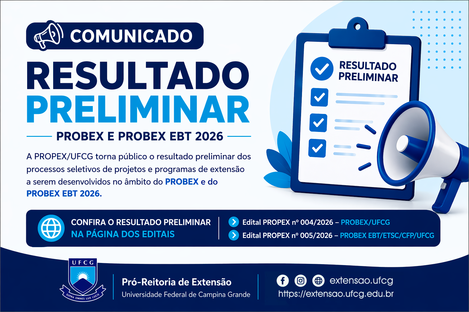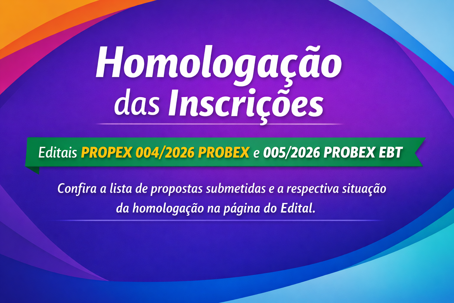 PROPEX divulga resultado da homologação das inscrições dos Editais 004/2026 PROBEX e 005/2026 PROBEX EBT